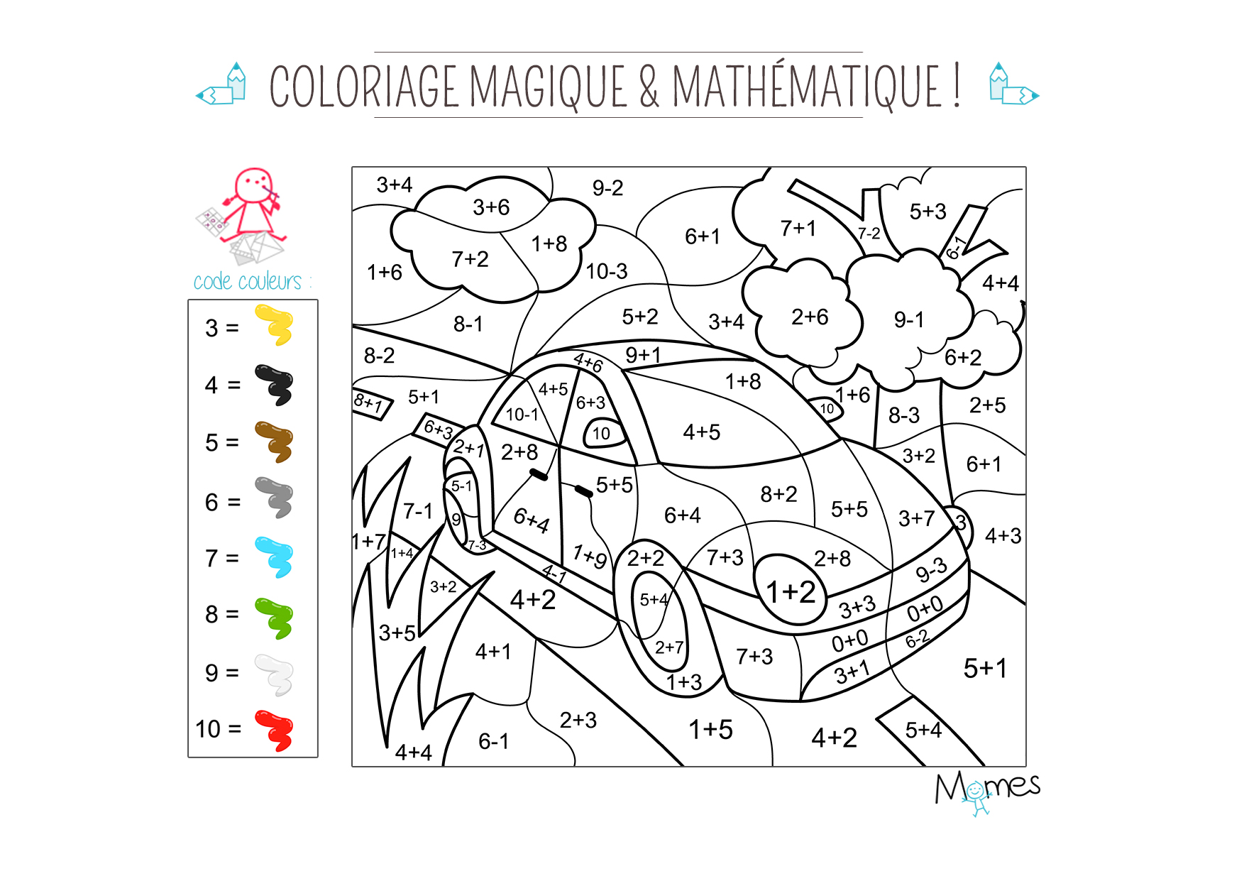 Voiture Coloriage Magique - Coloriage magique et mathématique : la voiture - Momes.net : Sur ces coloriages, votre enfant trouvera la voiture de ses rêves et pourra la colorier avec ses couleurs préférées.. 12 belles images de ton personnage préféré. Sur ces coloriages, votre enfant trouvera la voiture de ses rêves et pourra la colorier avec ses couleurs préférées. Sur ces coloriages, votre enfant trouvera la voiture de ses rêves et pourra la colorier avec ses couleurs préférées. Coloriage voiture gratuits à imprimer. Des dizaines de coloriages magiques en maths et français.